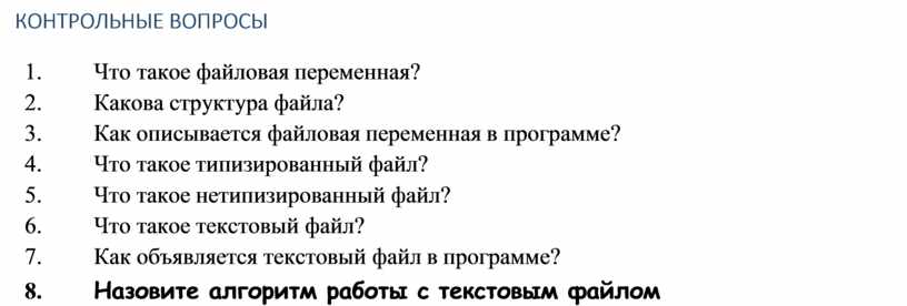 1. в программе, которая выводит результаты в файл или читает исходные данные из файла, должна быть объявлена файловая переменная типа text;