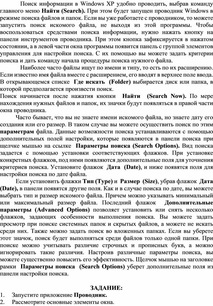 Поиск информации в компьютере