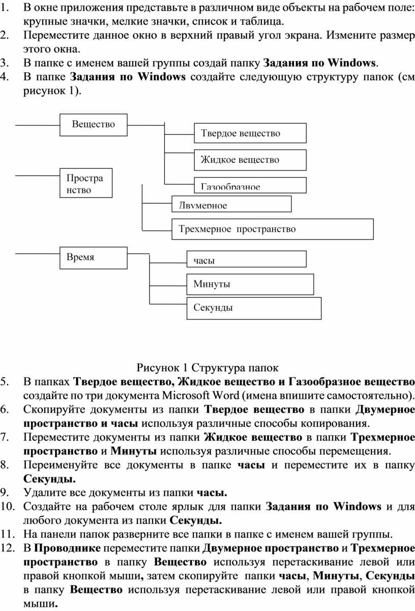 6. В папке Задания по Windows создайте следующую структуру папок (см рисунок 1).