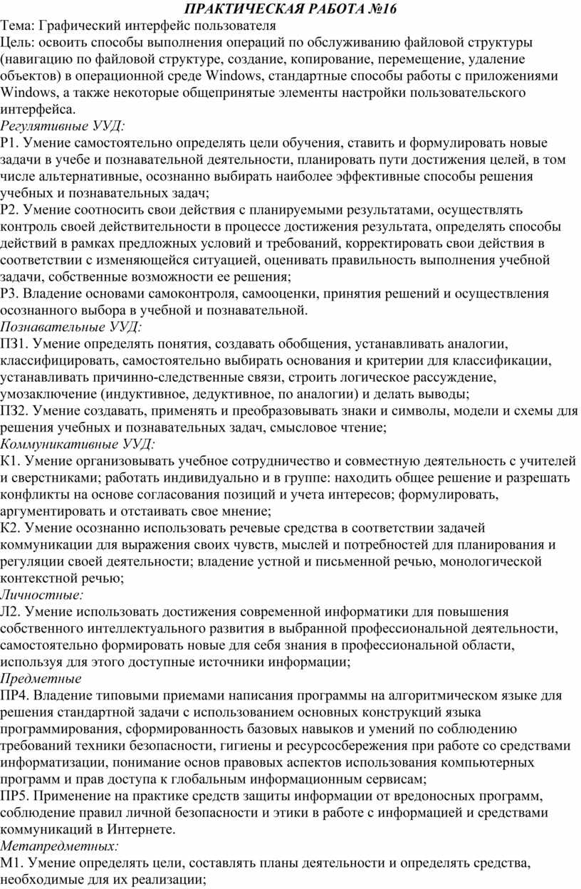 ПРАКТИЧЕСКАЯ РАБОТА №16