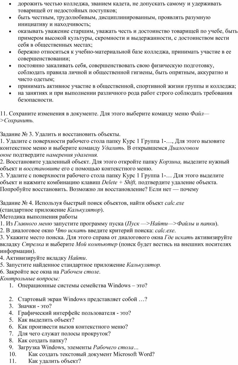 № 1. Загрузка Windows, элементы Рабочего стола и работа с ними.
