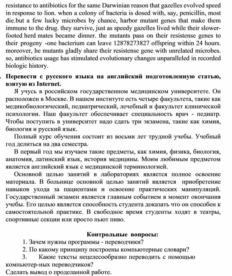 2). Перевести с русского языка на английский подготовленную статью, взятую из Internet.