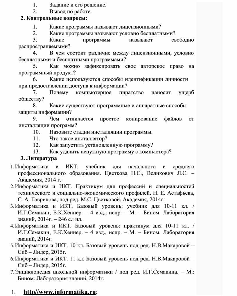 2. Оборудование, приборы, аппаратура, материалы: персональный компьютер с выходом в Интернет.