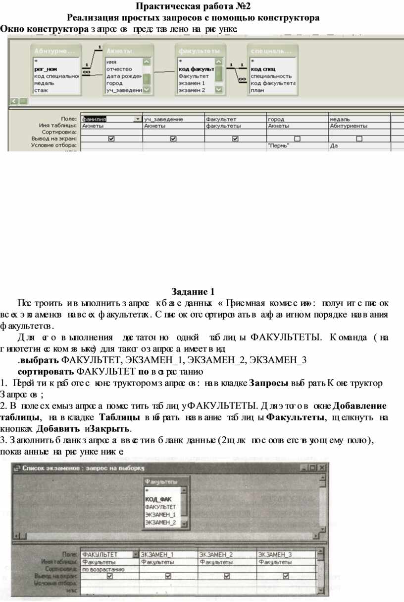 Реализация простых запросов с помощью конструктора
