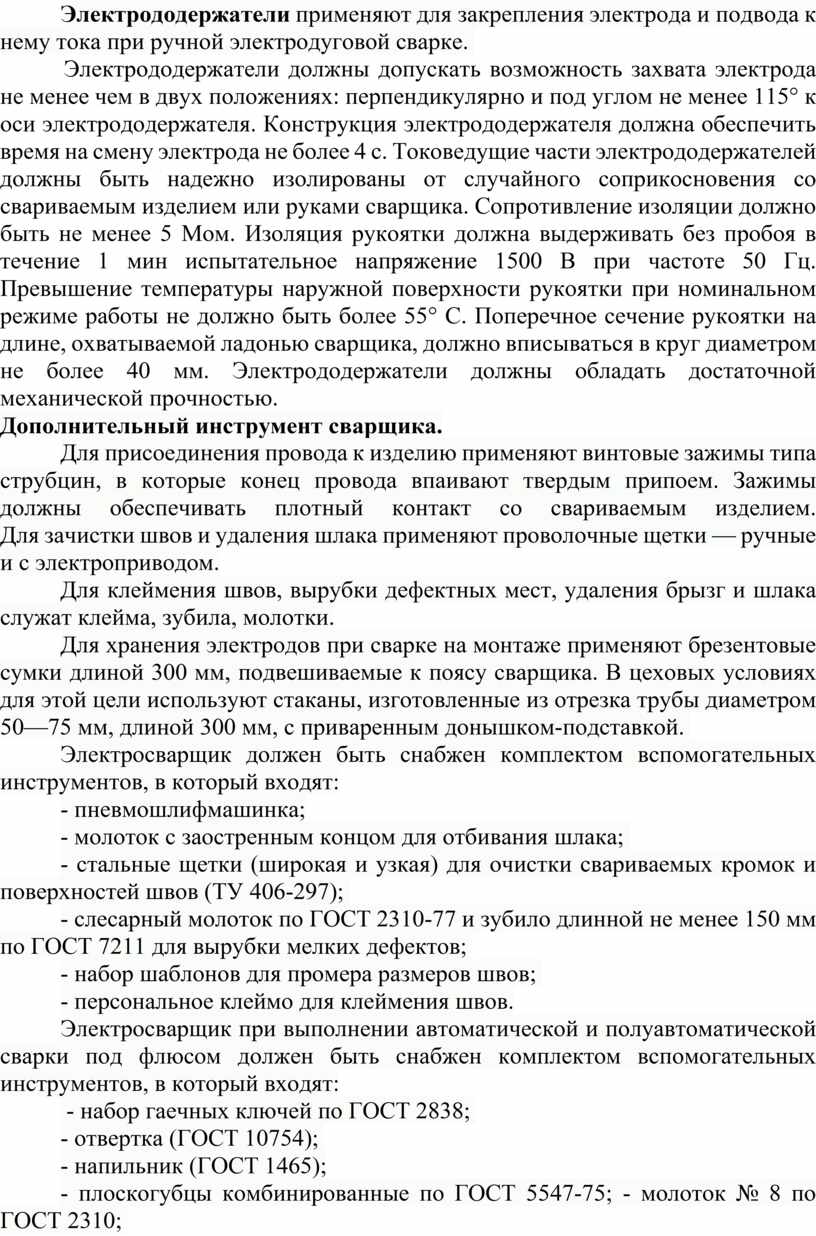 Электросварщик должен быть снабжен комплектом вспомогательных инструментов, в который входят: