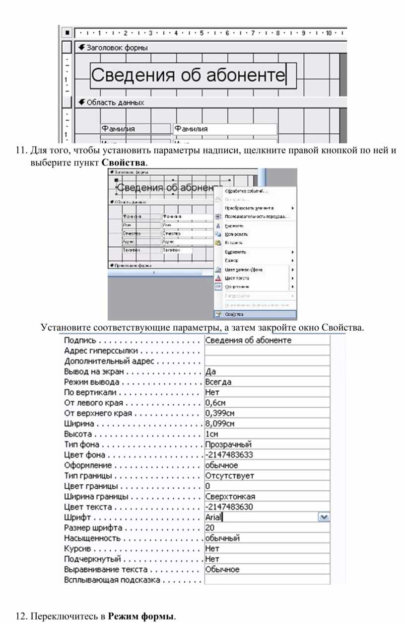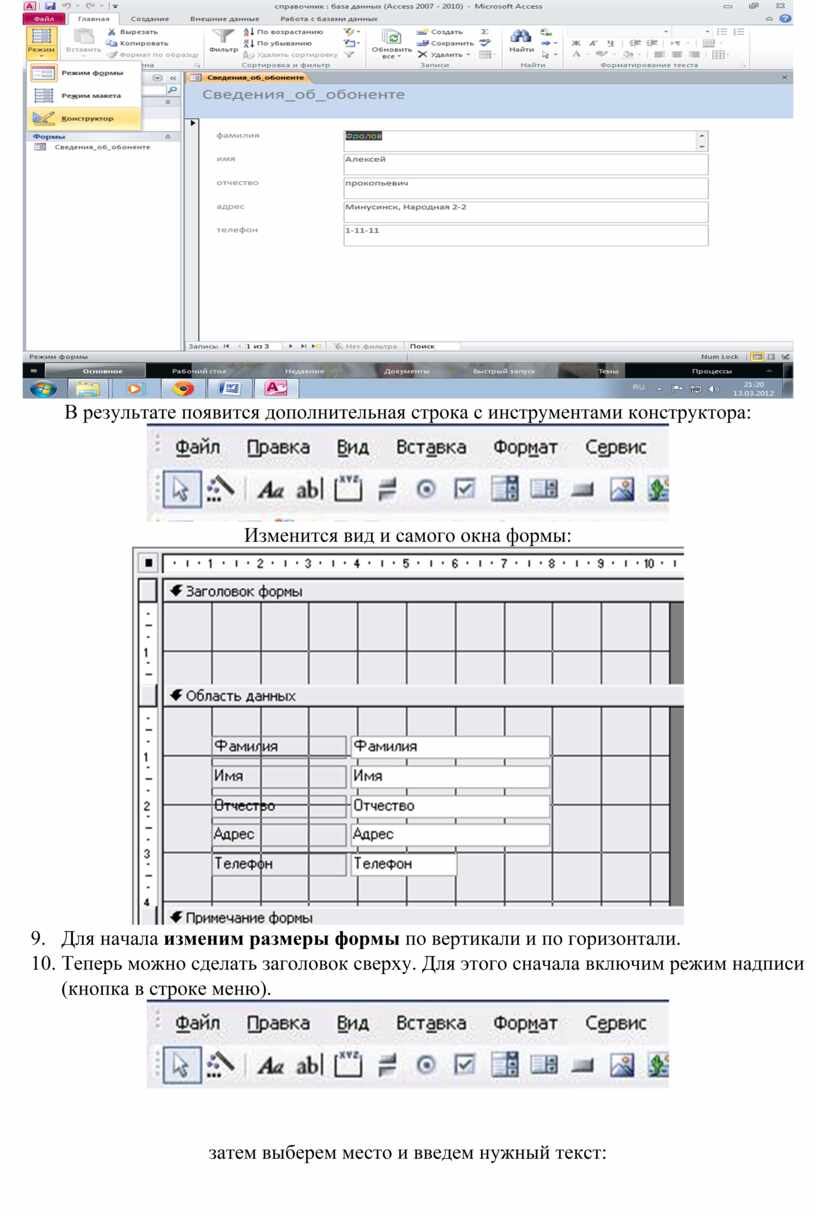 Редактирование форм в режиме конструктора.