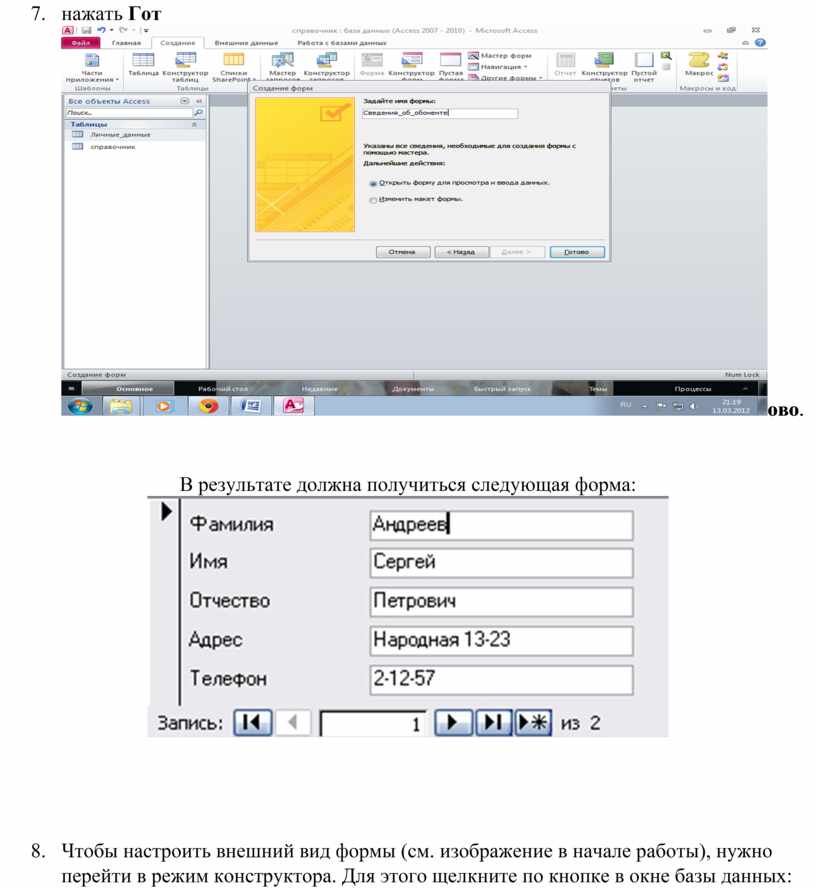 Создание форм с помощью мастера.