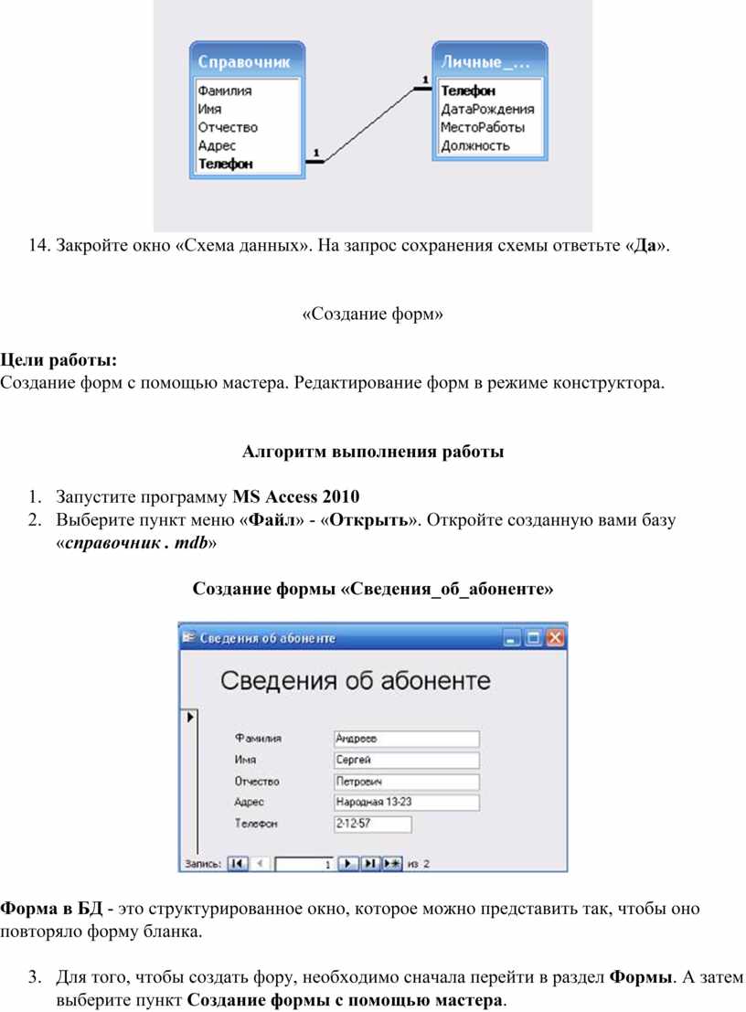 данных. Создание форм