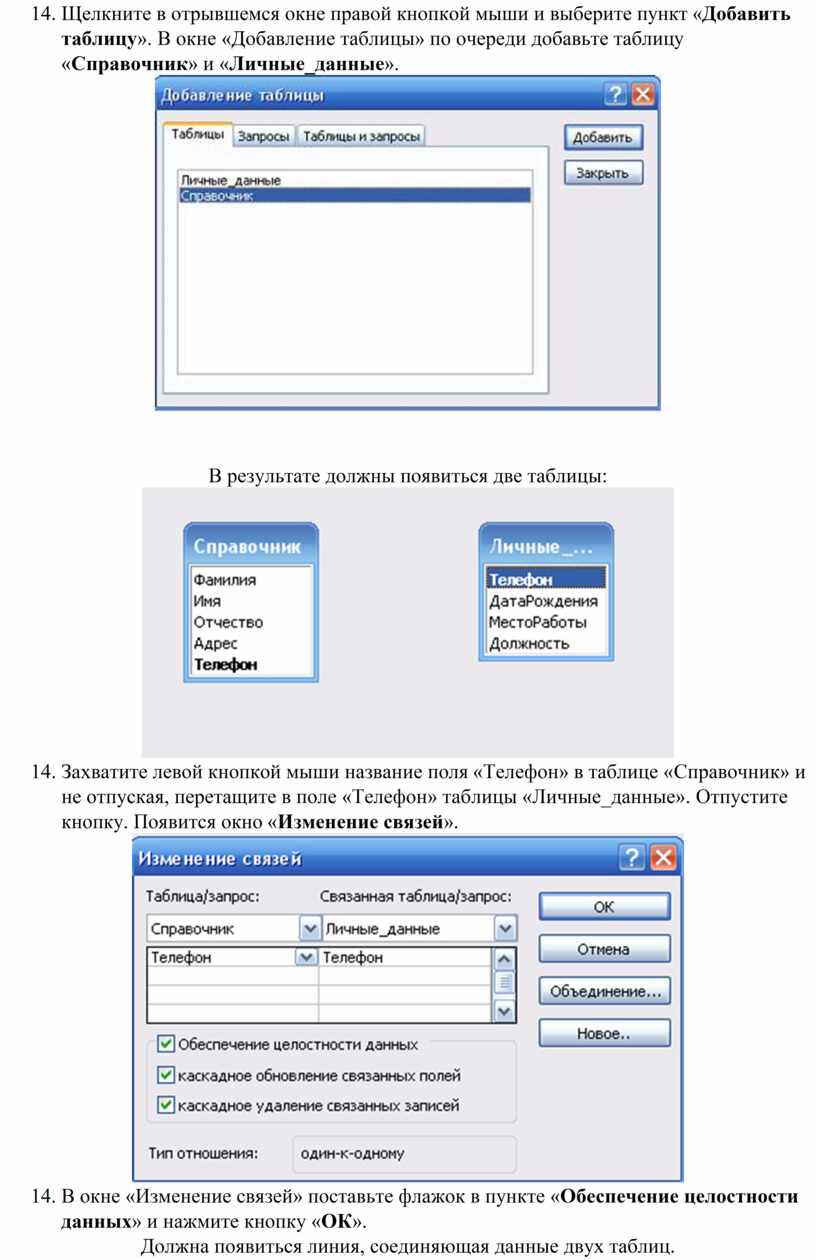 очереди добавьте таблицу «Справочник» и «Личные_данные».