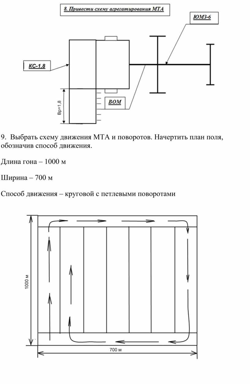 9. Выбрать схему движения МТА и поворотов. Начертить план поля, обозначив способ движения.