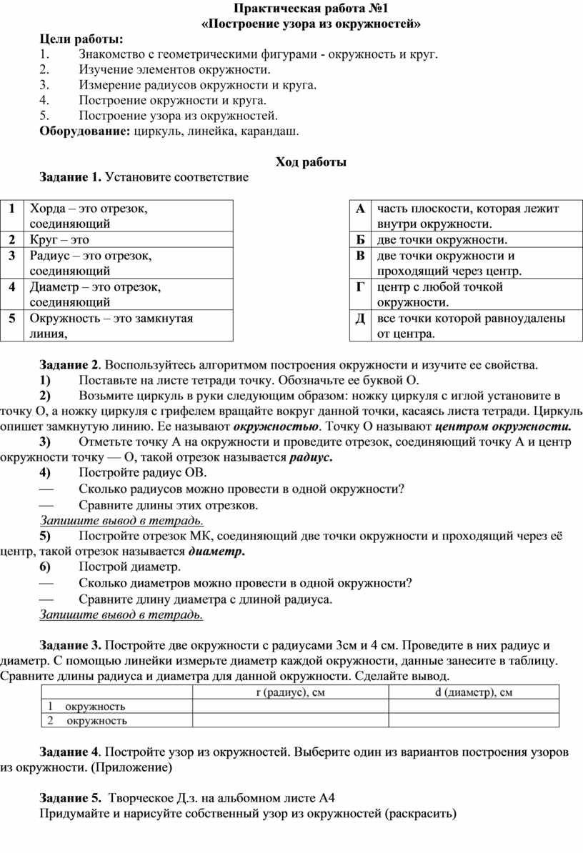 Оборудование: циркуль, линейка, карандаш.