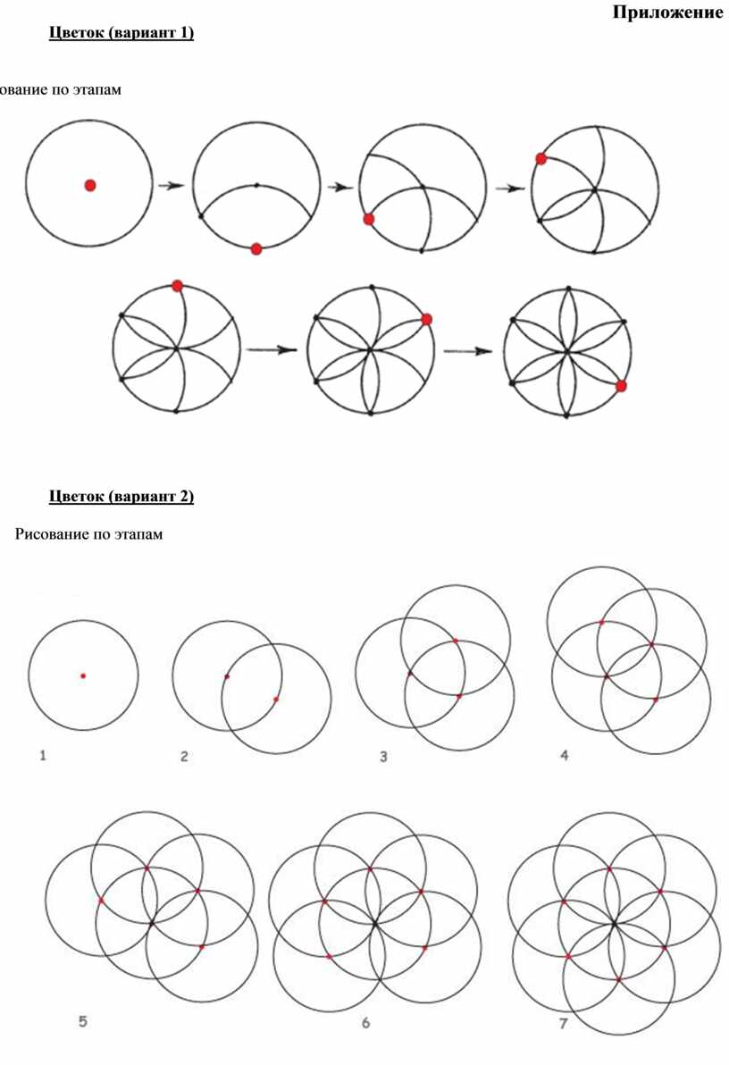 Задание 4. Постройте узор из окружностей. Выберите один из вариантов построения узоров из окружности. (Приложение)