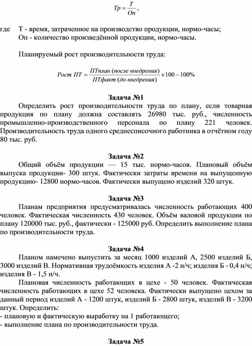 Валовая продукция за отчётный год составила 108000 тыс. руб. при численности работающих 1010 человек. Выпуск валовой продукции планируется увеличить на 15 при неизменной численности. Найти рост производительности труда.