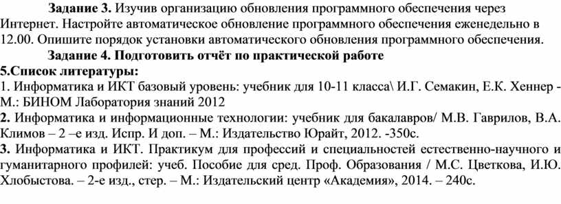 Задание 3. Изучив организацию обновления программного обеспечения через Интернет. Настройте автоматическое обновление программного обеспечения еженедельно в 12.00. Опишите порядок установки автоматического обновления программного обеспечения.