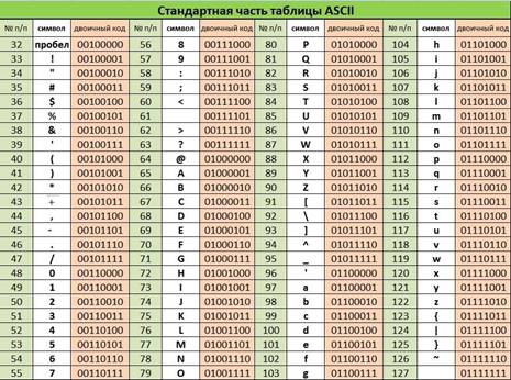 3. Пользуясь таблицей кодировки ASCII, расшифровать текст, представленный в виде двоичных кодов символов.
