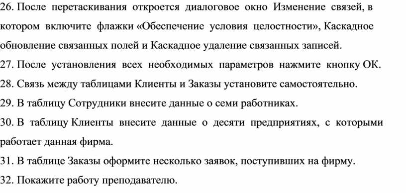 28. Связь между таблицами Клиенты и Заказы установите самостоятельно.