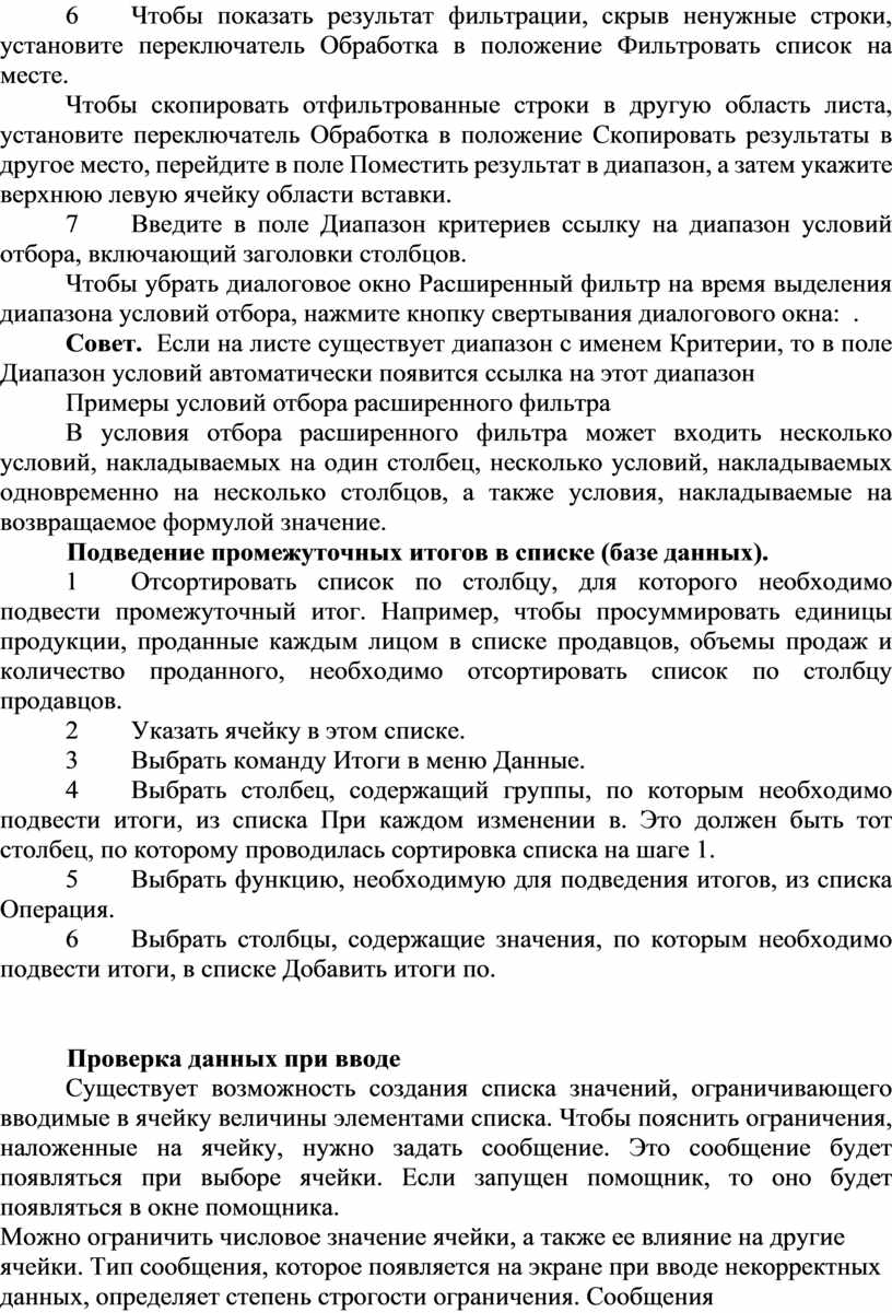 6 Чтобы показать результат фильтрации, скрыв ненужные строки, установите переключатель Обработка в положение Фильтровать список на месте.