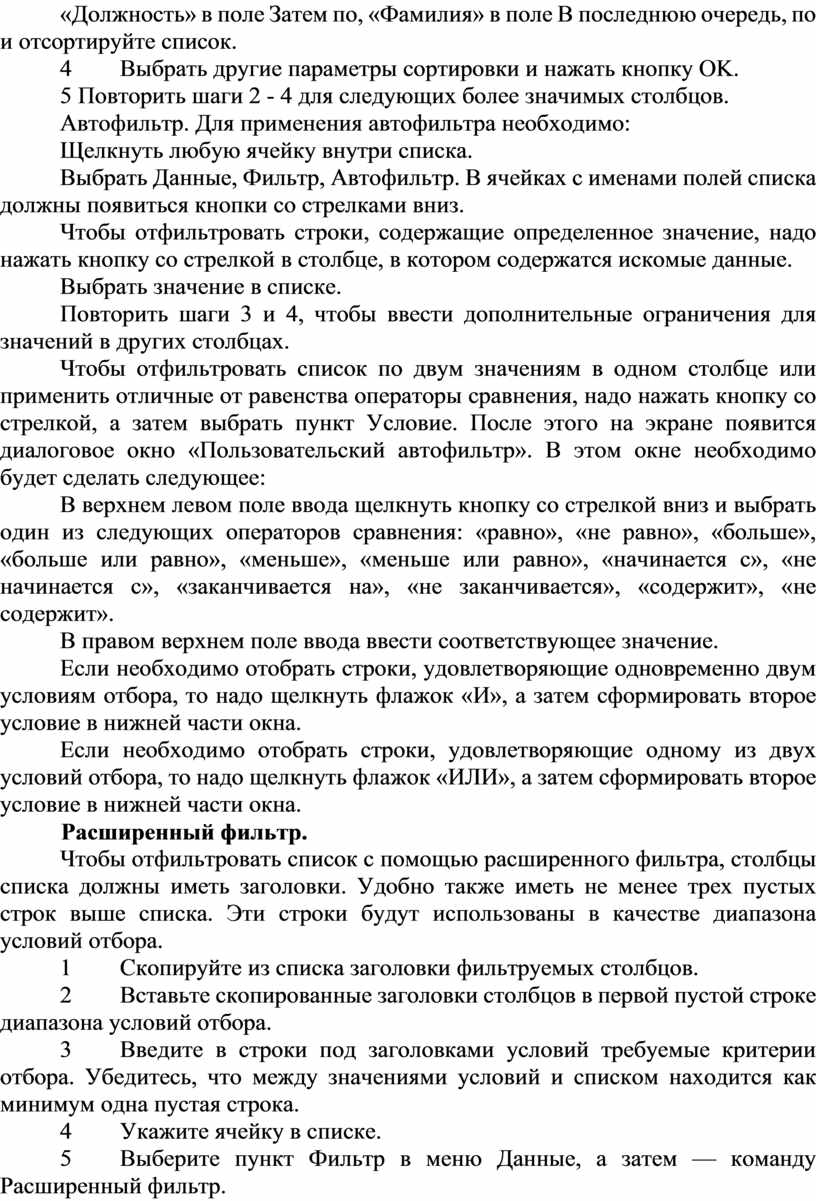 Автофильтр. Для применения автофильтра необходимо: