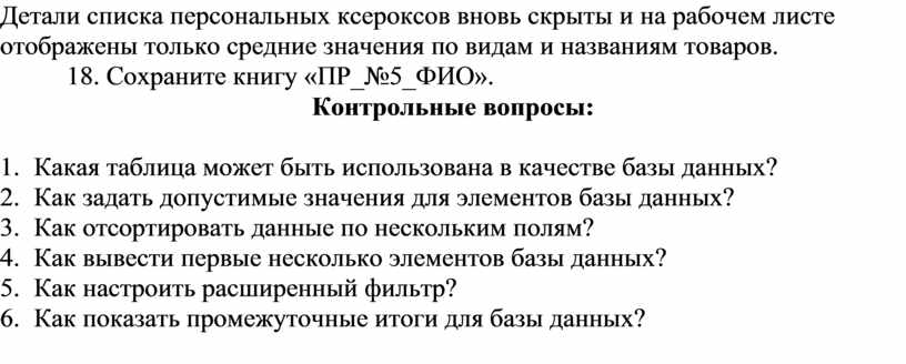 18. Сохраните книгу «ПР_№5_ФИО».