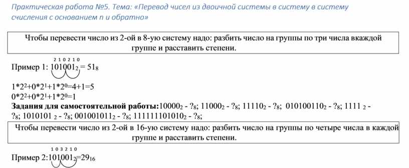 Задания для самостоятельной работы: 5318=?2; 66358=?2;