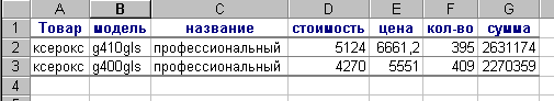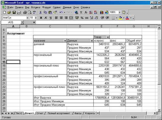 ü дважды щелкните в ячейке E15, появится лист, на котором отображены все данные о продаже профессиональных ксероксов.
