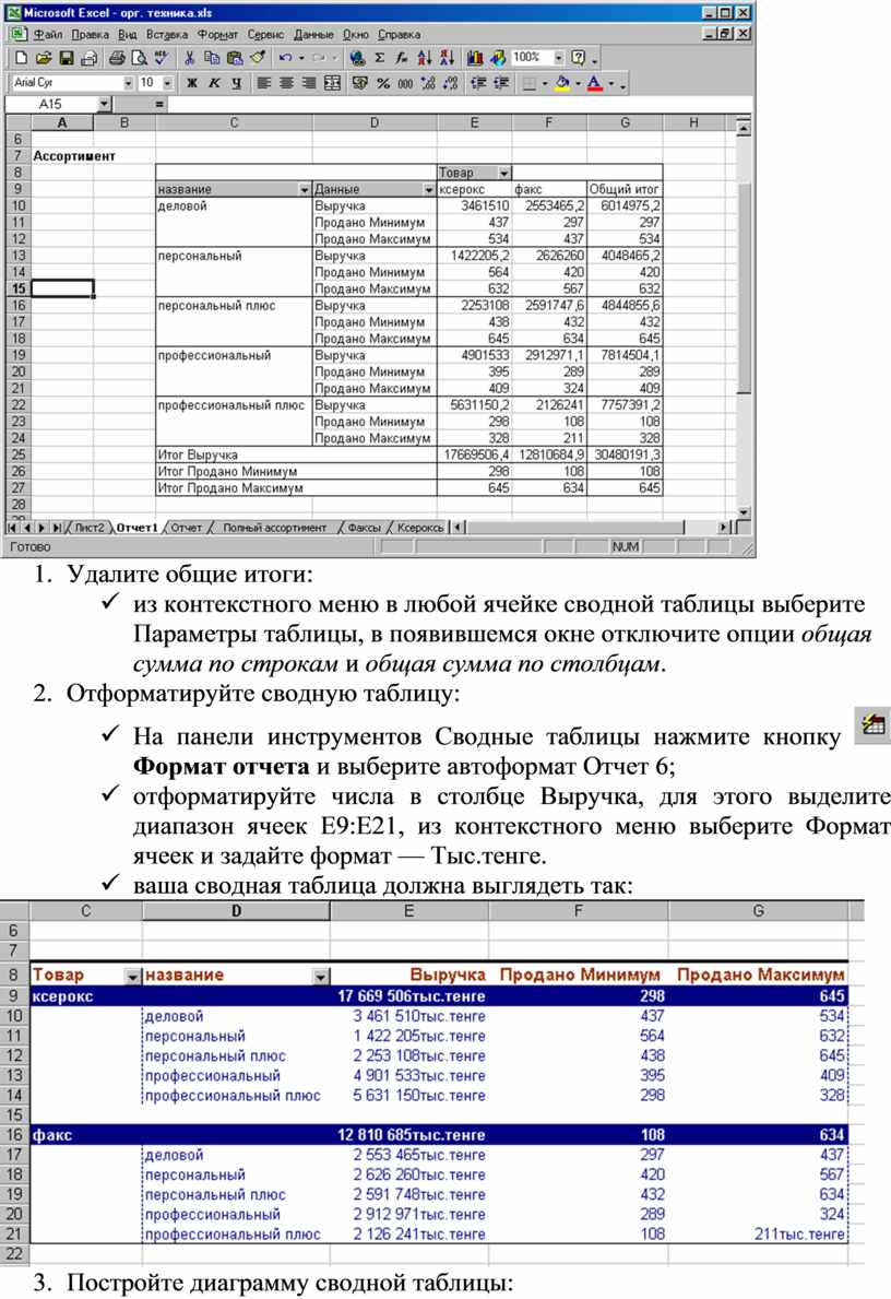13. Отформатируйте сводную таблицу: