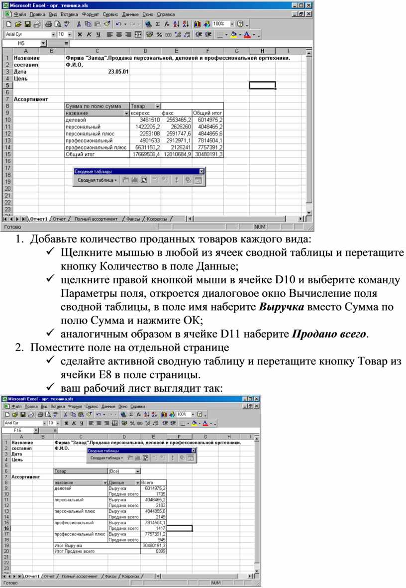 - повторным двойным щелчком в этой ячейке сводная таблица вернется к прежнему виду.