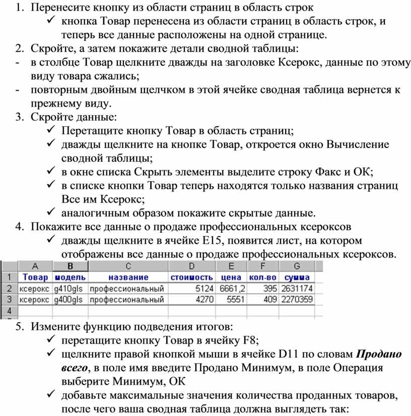 - в столбце Товар щелкните дважды на заголовке Ксерокс, данные по этому виду товара сжались;