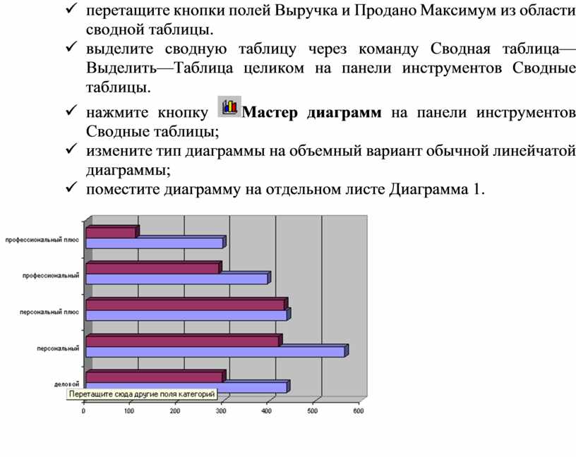 ü перетащите кнопки полей Выручка и Продано Максимум из области сводной таблицы.
