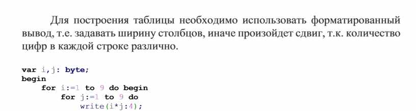 for i:=1 to 9 do begin for j:=1 to 9 do