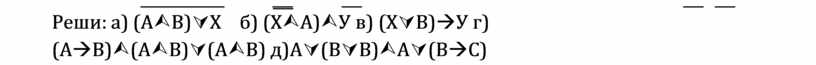 Реши: а) (АÙВ)ÚХ б) (ХÙА)ÙУ в) (ХÚВ)àУ г) (АàВ)Ù(АÙВ)Ú(АÙВ) д) АÚ(ВÚВ)ÙАÚ(ВàС)