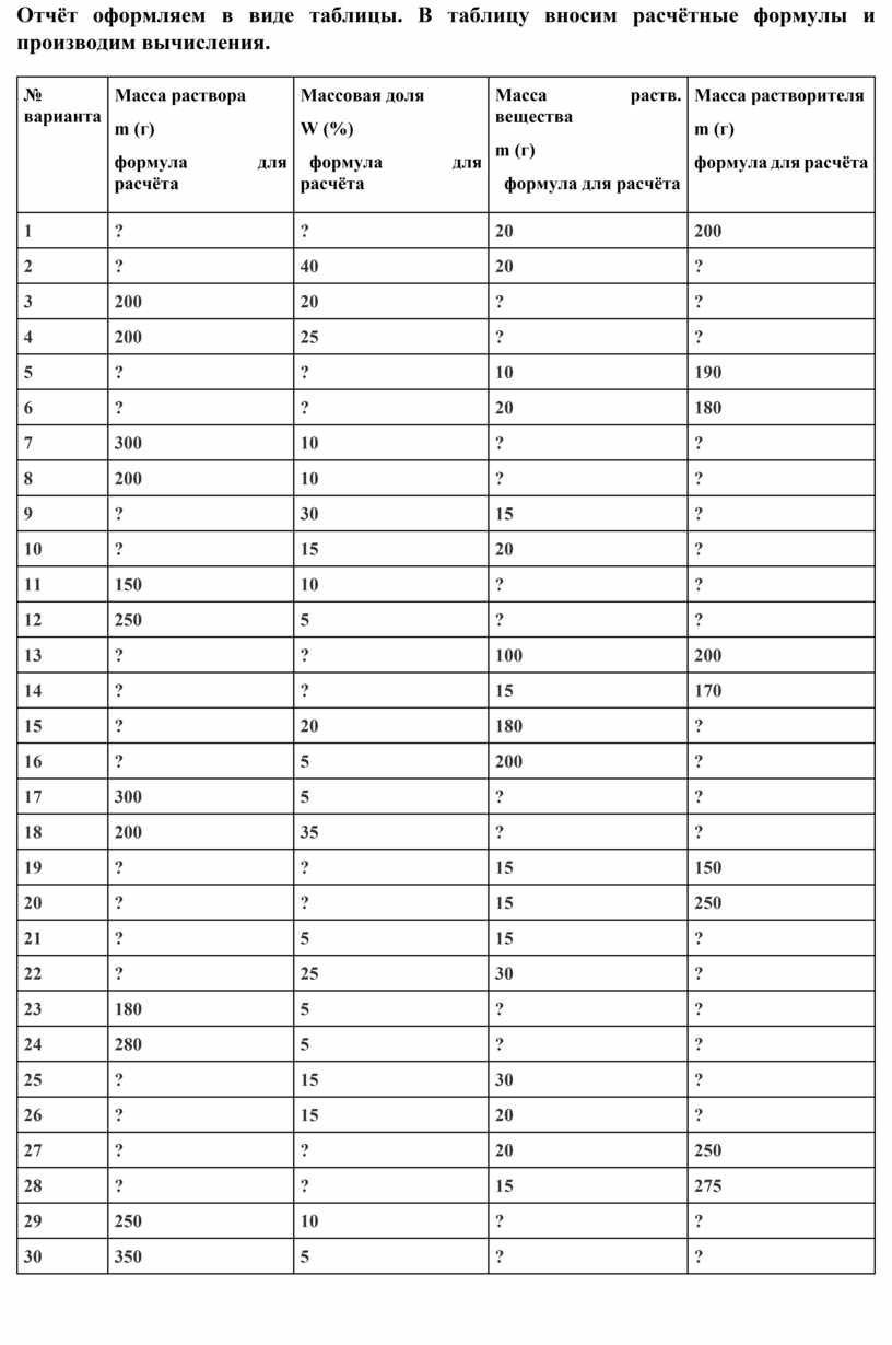 Масса раств. вещества m (г) формула для расчёта |