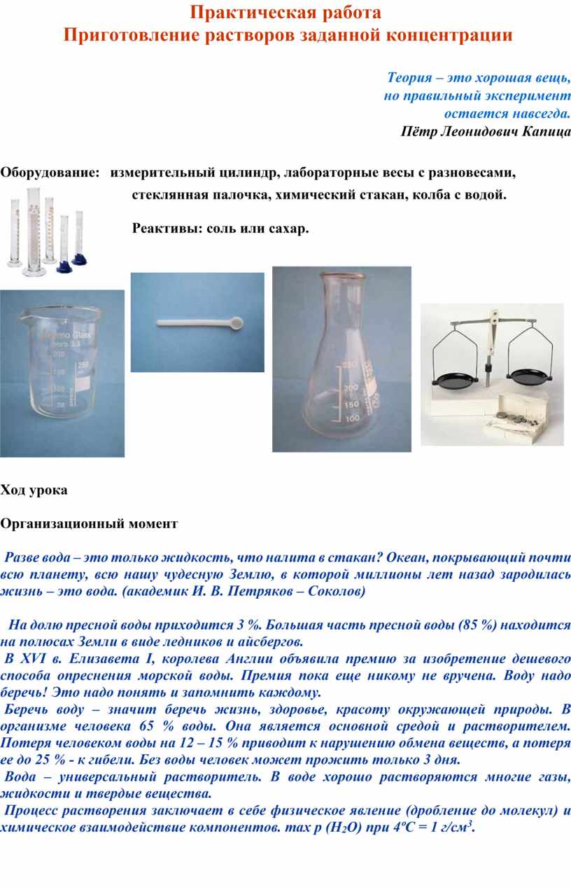 Приготовление растворов заданной концентрации