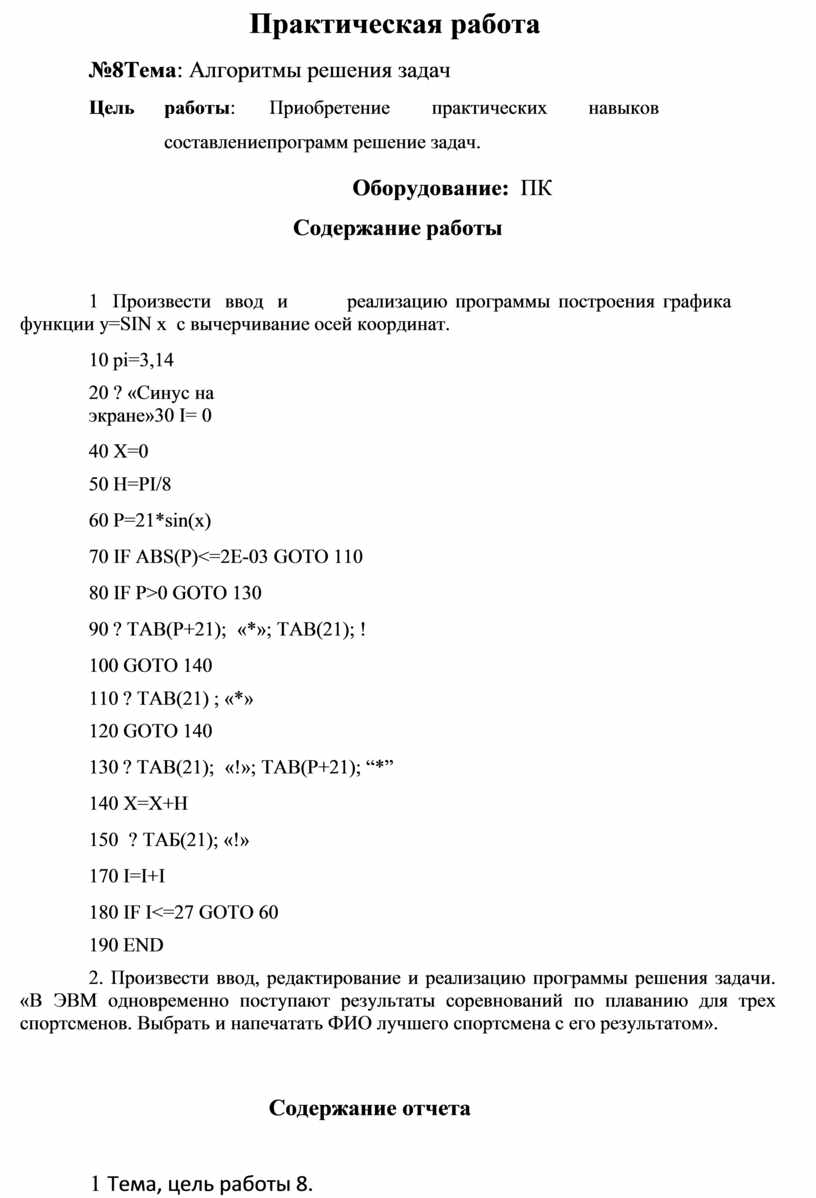 Практическая работа №8 Тема: Алгоритмы решения задач