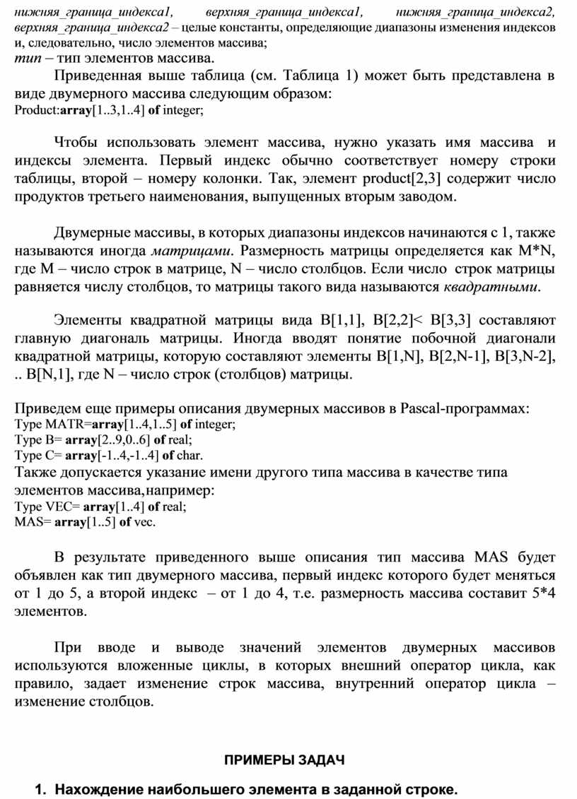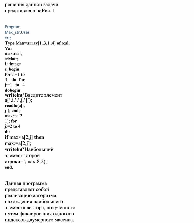 if max<a[2,j] then max:=a[2,j]; writeln(‘Наибольший элемент второй строки=’,max:8:2);