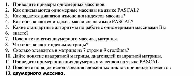 8. Как обозначаются индексы массивов на языке PASCAL?