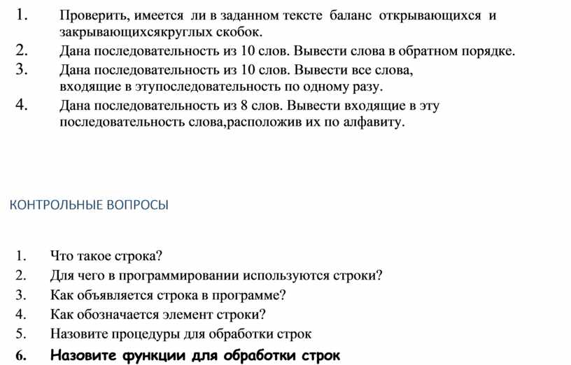 6. Назовите функции для обработки строк