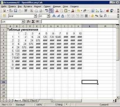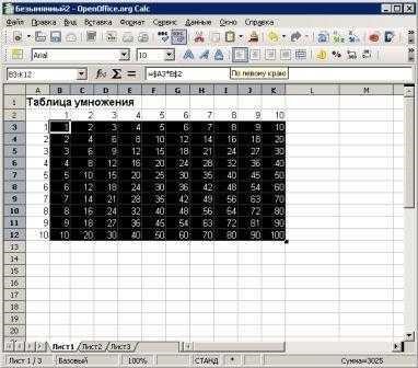 В электронных таблицах с использованием в формулах смешанных ссылок создать таблицу умножения: