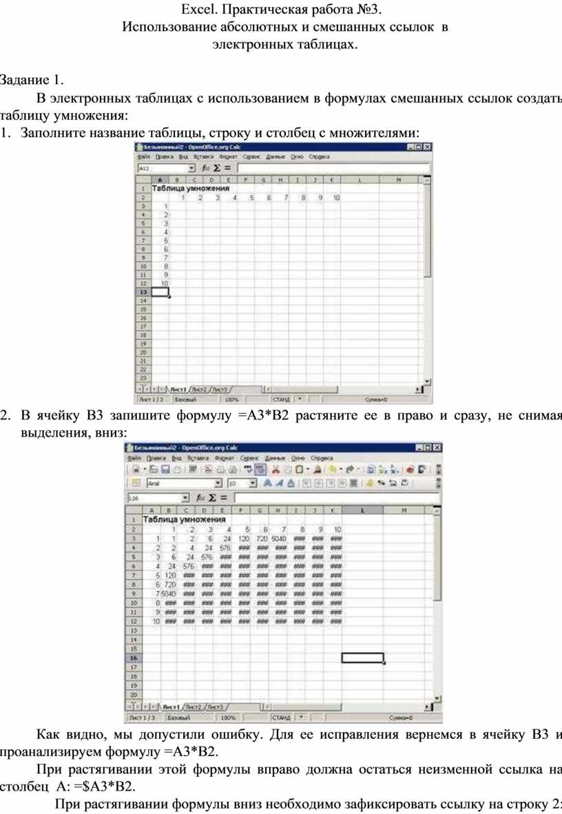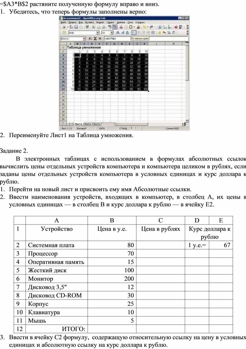 Использование абсолютных и смешанных ссылок в электронных таблицах.