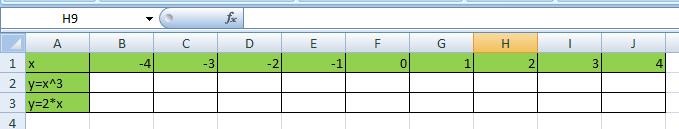 2. В электронных таблицах построить графики кубической функции у=х3 и линейной функции у=2*х.