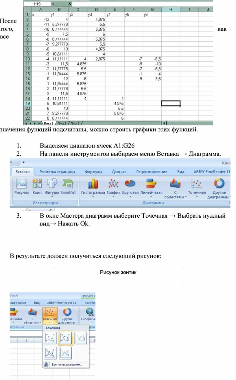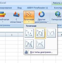 3. В окне Мастера диаграмм выберите Точечная → Выбрать нужный вид→ Нажать Ok.
