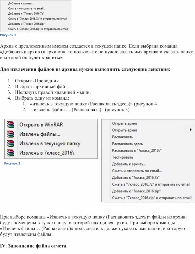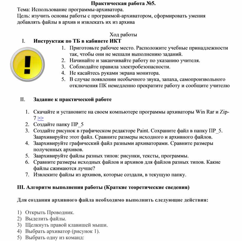 Цель: изучить основы работы с программой-архиватором, сформировать умения добавлять файлы в архив и извлекать их из архива