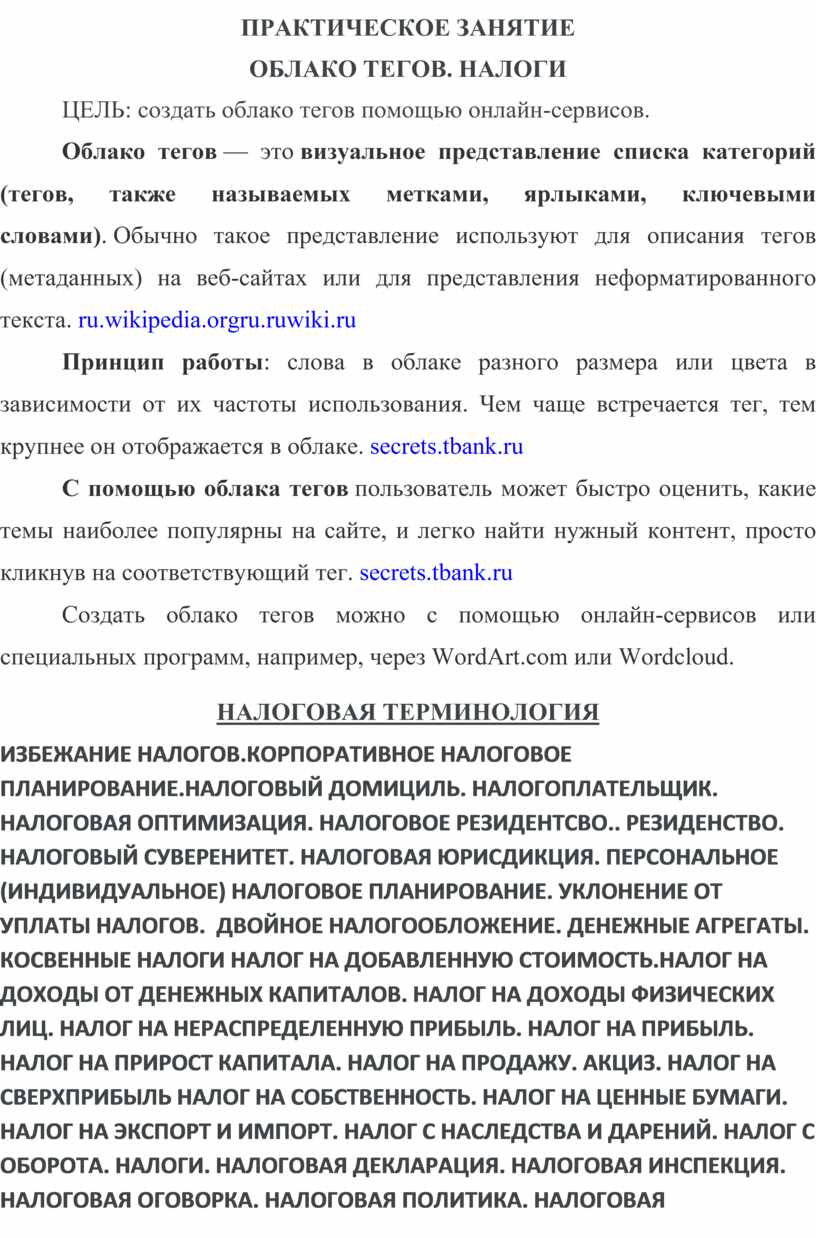 ОБЛАКО ТЕГОВ. НАЛОГИ