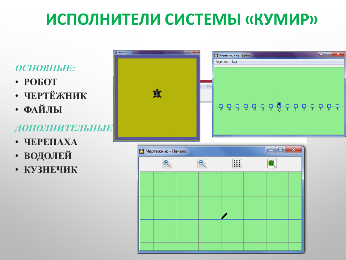 среда какого-либо учебного исполнителя алгоритмов графического типа, назначение которого — рисование на экране компьютера. К числу таких исполнителей относятся: Черепашка Лого, Чертежник, Кенгуренок, КуМир, Робот и др.
