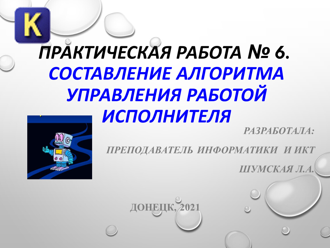 Практическая работа № 6. Составление алгоритма управления работой исполнителя