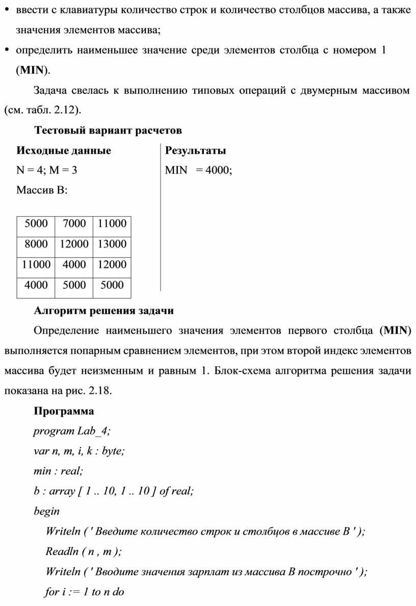 Программа program Lab_4; var n, m, i, k : byte; min : real;