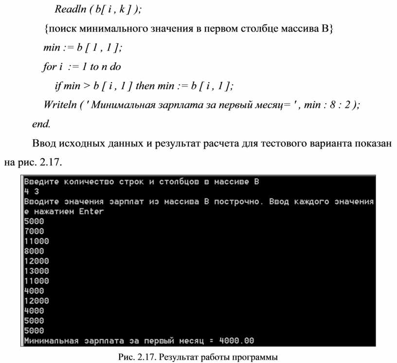 Writeln ( ' Минимальная зарплата за первый месяц= ' , min : 8 : 2 ); end.