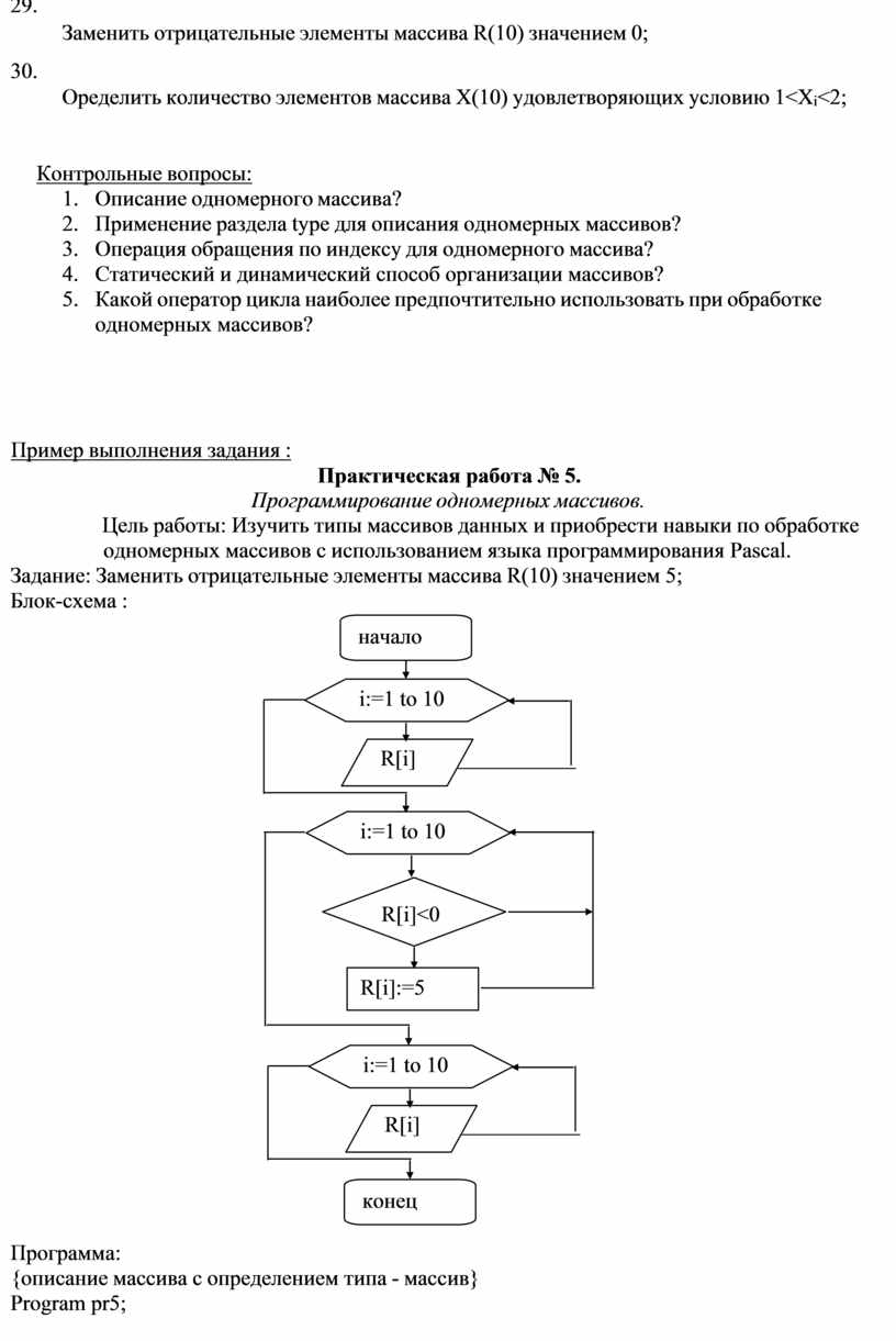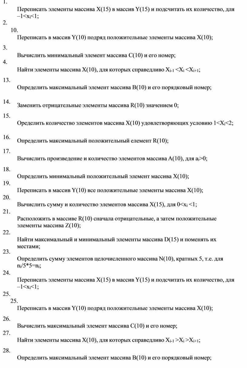 29. Заменить отрицательные элементы массива R(10) значением 0; 30.