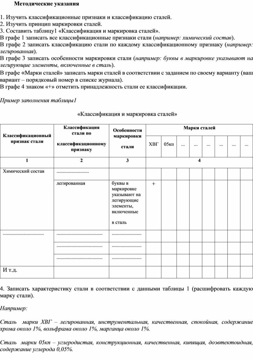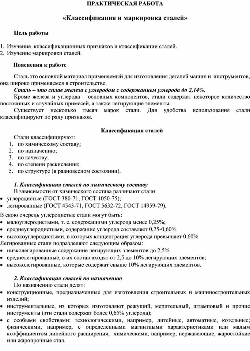 3. Составить таблицу 1 «Классификация и маркировка сталей».