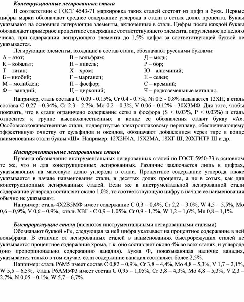 · легированные (ГОСТ 4543-71, ГОСТ 5632-72, ГОСТ 14959-79).